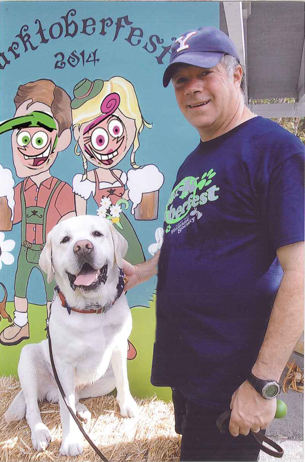 As soon as Dad finished his drink, Mongo sprung from the pool and shook. Within moments, they were back on the course in second place. Ahead of them now were a couple with their schnauzer, but Mongo and Dad had spent too much energy on the out leg pulling at opposite ends of the leash.
