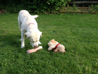 “Fine. Fine.” He answered as he took a mental inventory of the damage. Nothing seemed to be broken, or even really bruised. Mongo came over to help by giving Dad a big kiss on the nose. “Thanks Buddy, but that’s really not helping. Kimi, can you call him over to you?”