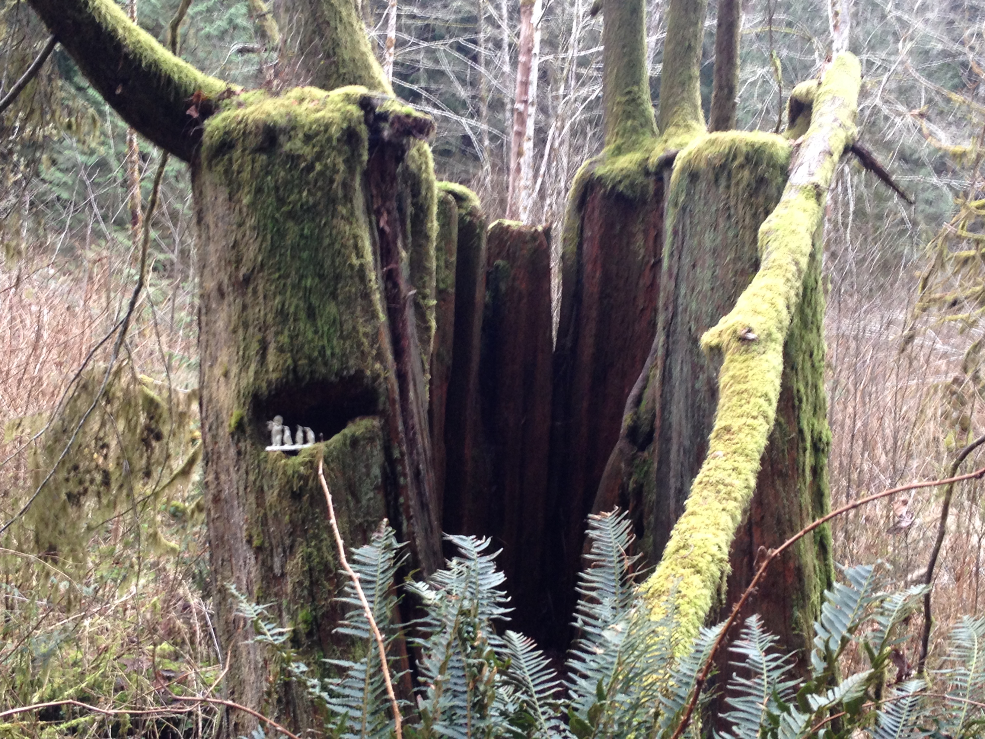 Someone had used a niche in an old stump to place a small carving. The carving was a Pied Piper scene with penguins following the piper. Dad wondered what the carving meant to the person who had put it there. He couldn’t quite grasp the purpose of the display, but he enjoyed seeing it there none the less, and maybe that was the real purpose after all.