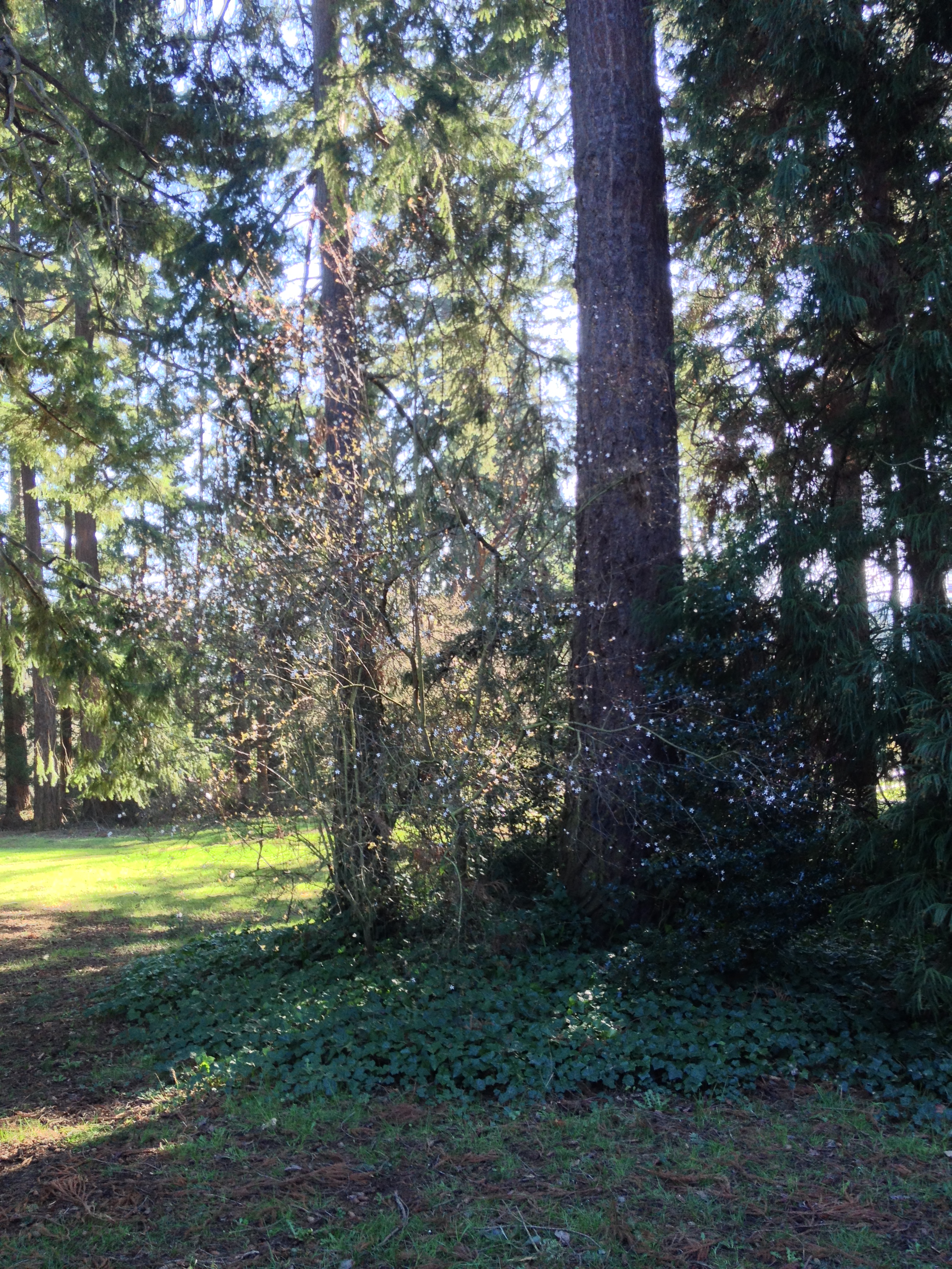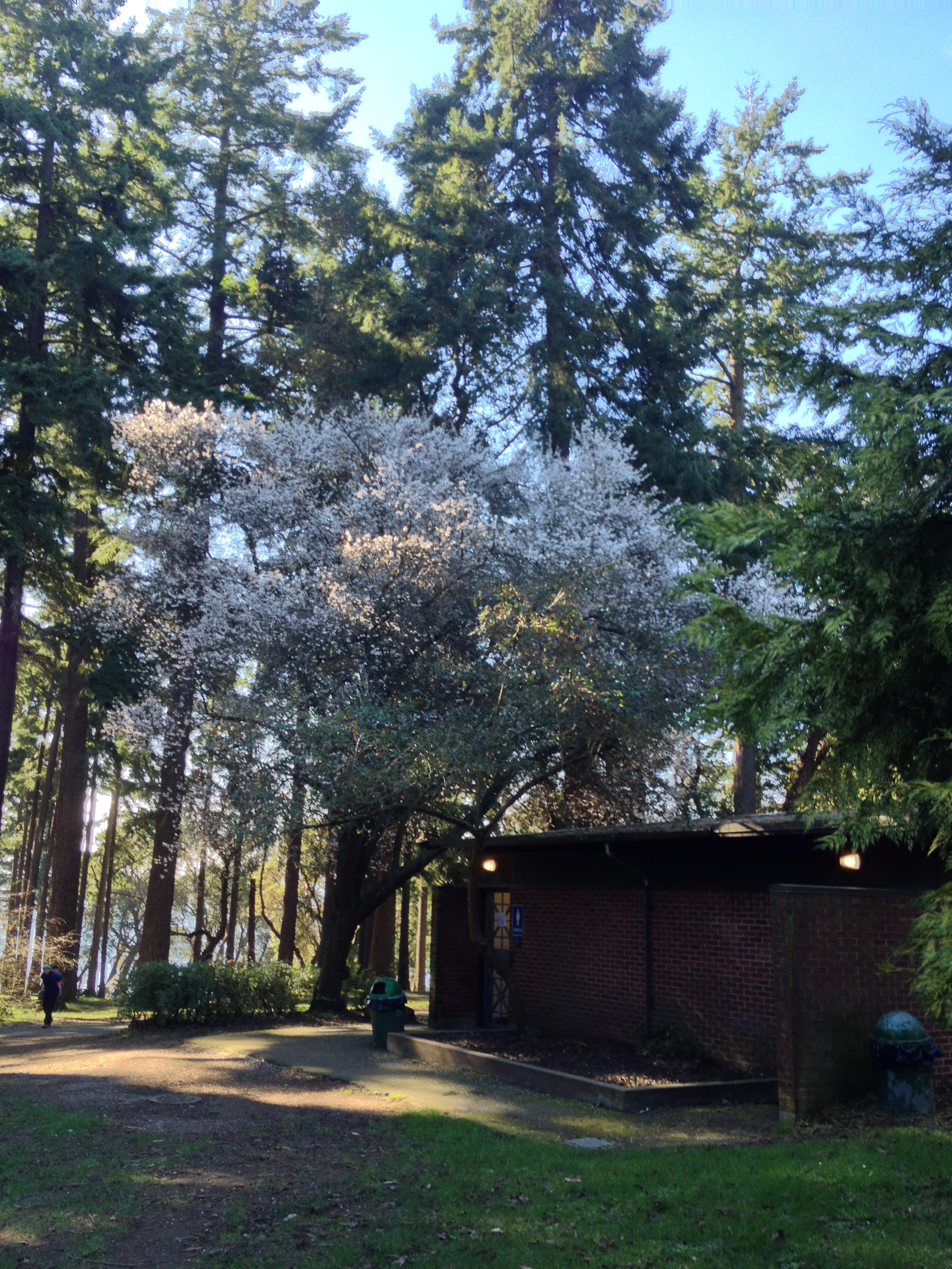 Flowers were blooming in the ball fields, and trees were blooming throughout the park.