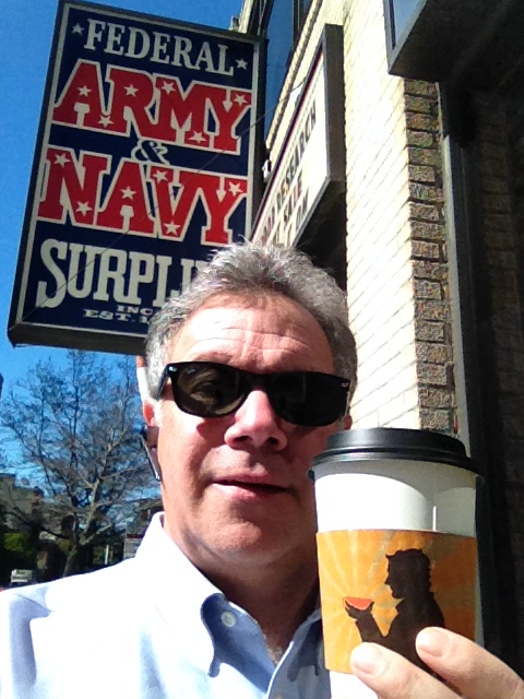 On First Avenue, Dad stopped in the Federal Army Navy Surplus store. He drifted through the store, taking in all the exotic sights. The astronaut helmets were definitely worth a little extra time. There was nothing he needed in particular, so he drifted back out onto the sidewalk.