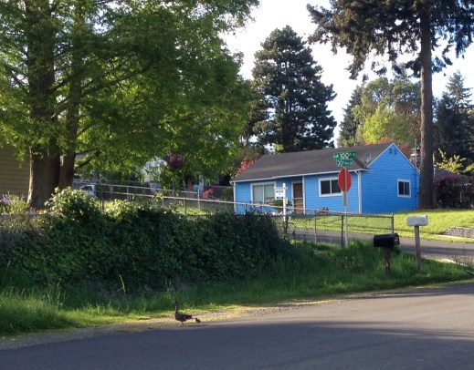 Almost directly across from him was a momma duck and a duckling. They were walking along the shoulder of the road, with Momma busily quacking. Where they had come from was not obvious to Dad, but wherever they were going, Momma seemed very determined to get there.