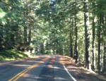 After Ashford, Dad entered the park.  The brilliant fall sunlight was spilling through the leaves of the trees and onto the road.  He stopped at the Kautz Creek Trail Head to snap a picture Mt. Rainier, on his way to the trail head.  At the trail head, Dad noticed a Schwinn mountain bike chained to the map display.  He nodded his head to the brave soul who rode here on a mountain bike and then hiked up the trail.  He thought to himself, “That’s something Kimi might do!”