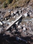 The first thing Dad saw on this part of the trail was the top of Comet Falls, which had been one of the reasons he had kept walking beyond the falls in the first place.  That put a check in the box next to that landmark.  It did require crossing another log bridge, which are amongst Dad’s least favorite methods of crossing streams.  The only methods below maintained log bridges on the list are: plain logs, tight ropes, and rocket powered motorcycles.