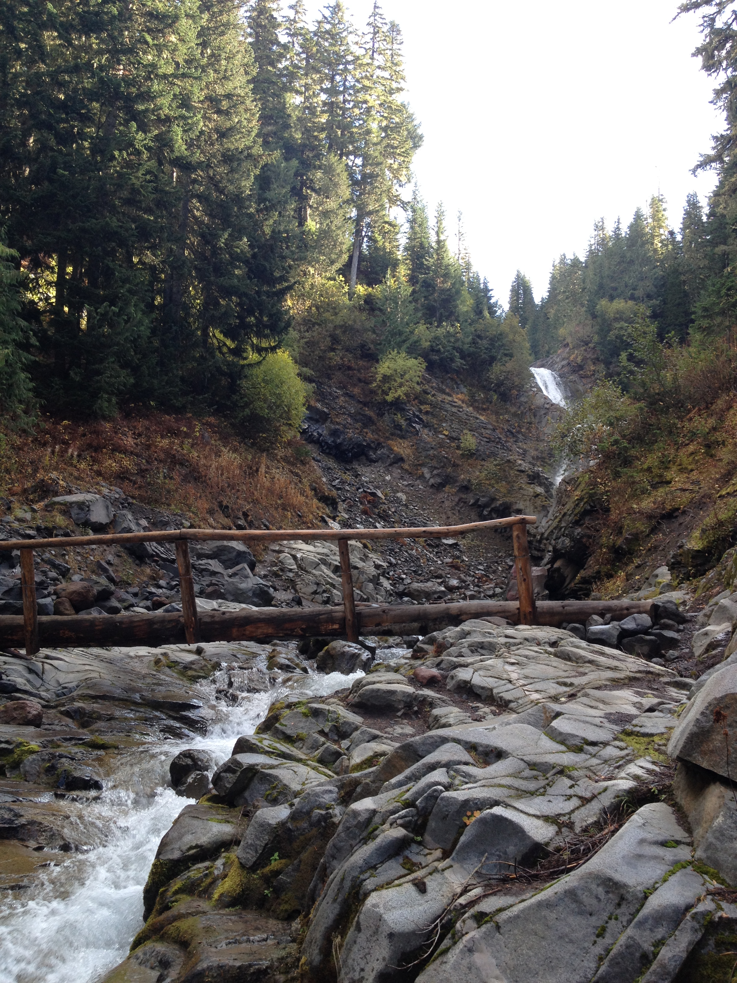 The first thing Dad saw on this part of the trail was the top of Comet Falls, which had been one of the reasons he had kept walking beyond the falls in the first place.  That put a check in the box next to that landmark.  It did require crossing another log bridge, which are amongst Dad’s least favorite methods of crossing streams.  The only methods below maintained log bridges on the list are: plain logs, tight ropes, and rocket powered motorcycles.