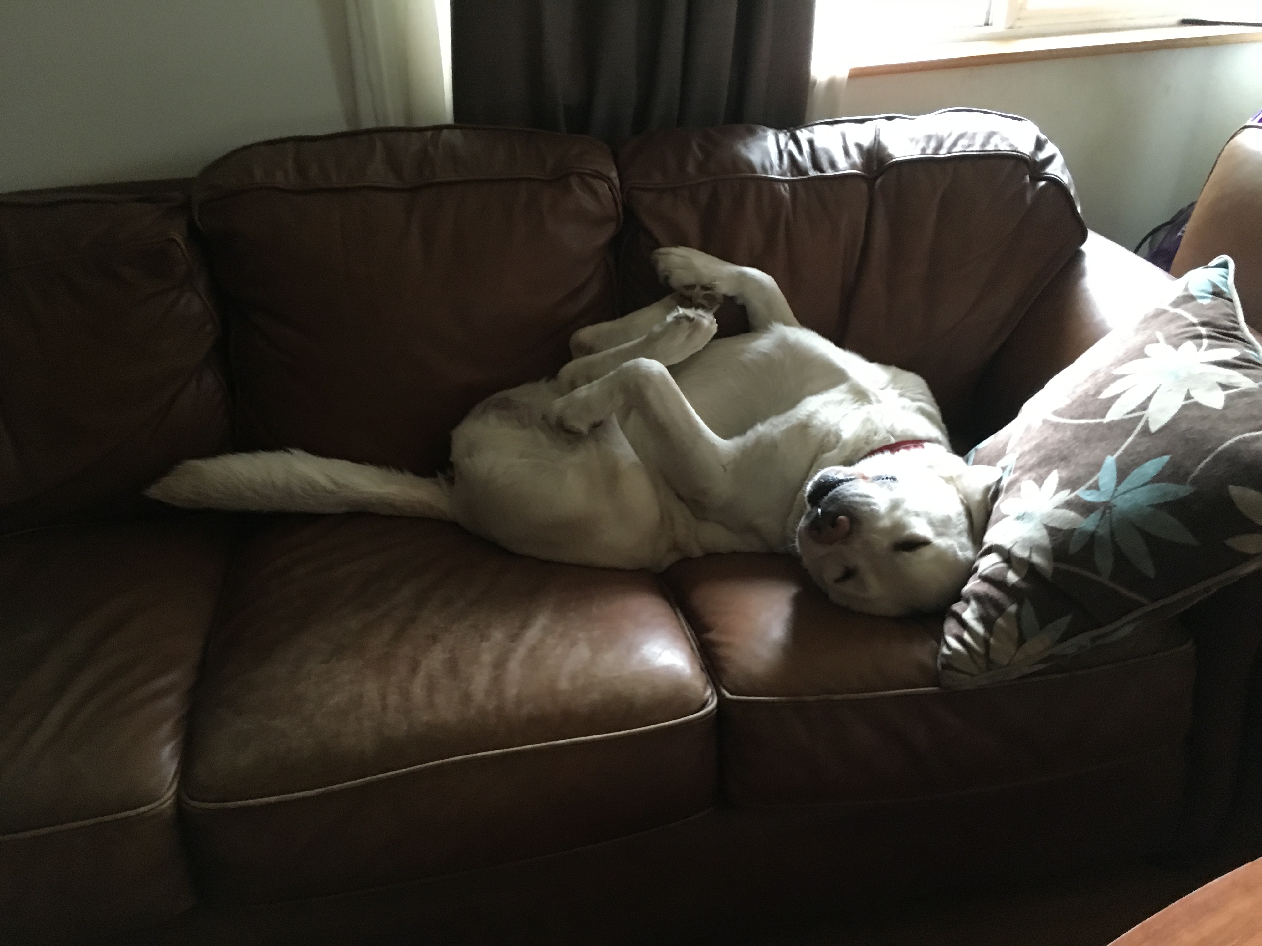 He is only casually interested in raccoons & squirrels compared to grouse and pheasant. And when he is asleep on his back like that, noting wakes him. 😉