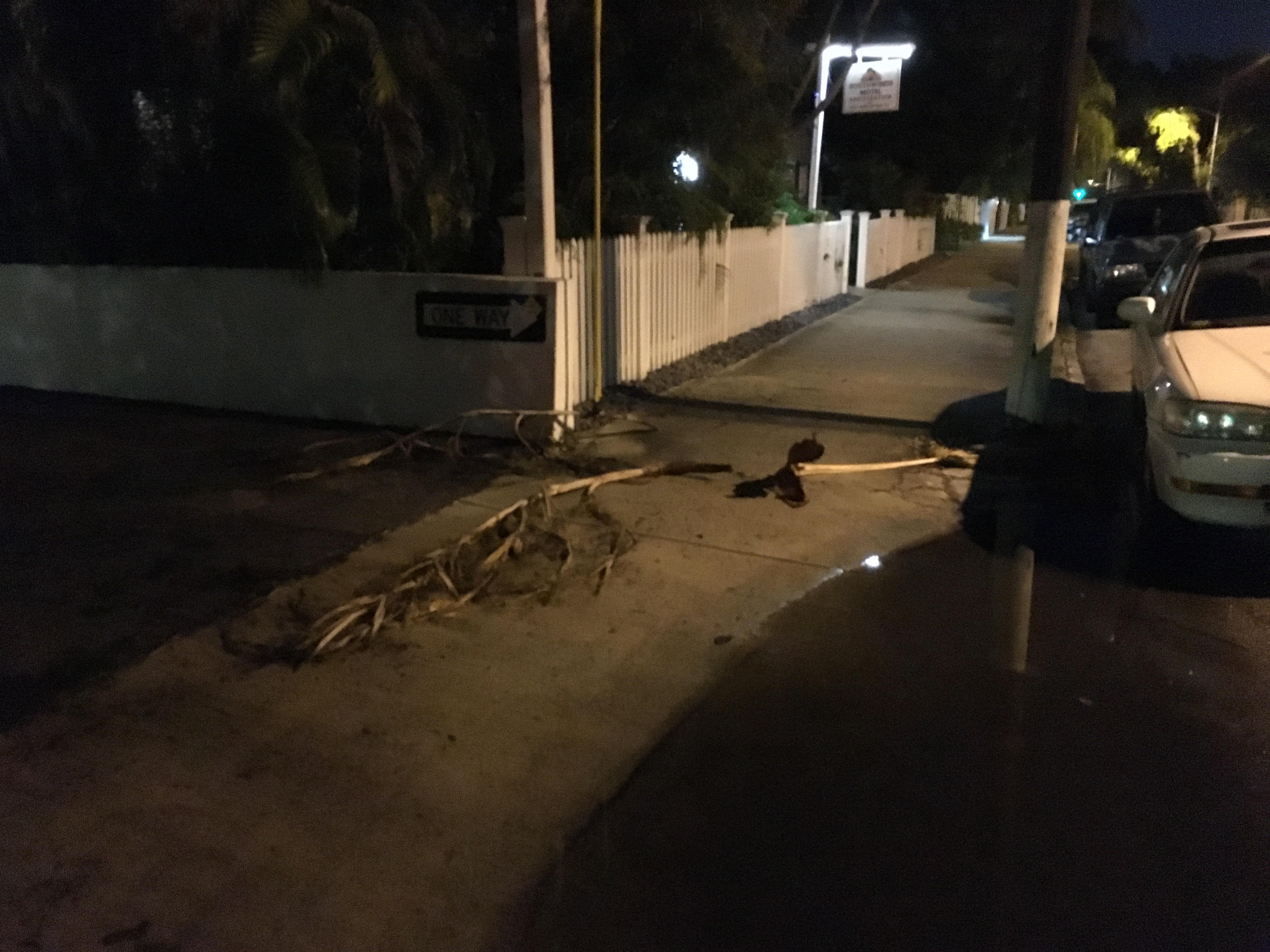 He started off from the hotel walking toward the southernmost point in the continental United States. He navigated under the illumination of the street lamps. There was a stiff breeze that stirred the palm leaves above him. The churning leaves cast dancing shadows on the sidewalk. He stopped at the marker, looked around for a moment, and noted the sea was a bit rough. He turned and headed up the street