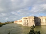From there Dad decided to get a view of the outside of the fort.   He found a path across the moat from the fort, and followed it all the way to the beach.  He watched some kite fliers, and then he watch a gaggle of teenage girls race down the ocean-side trail on scooters, tearing right past the No Bicycles sign. He thought about pointing out the sign to them if they came back, but figured they would simply point out that they were riding scooters not bicycles.  Dad decided some people were not worth it.