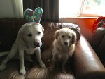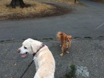 On this evening Dad and Mongo made the loop around Lincoln park. They watched the Vashon Island ferry come and go from the pier. And they met a pseudo-Meggie. Mongo was intrigued. This dog looked like his buddy, but didn’t smell like her.