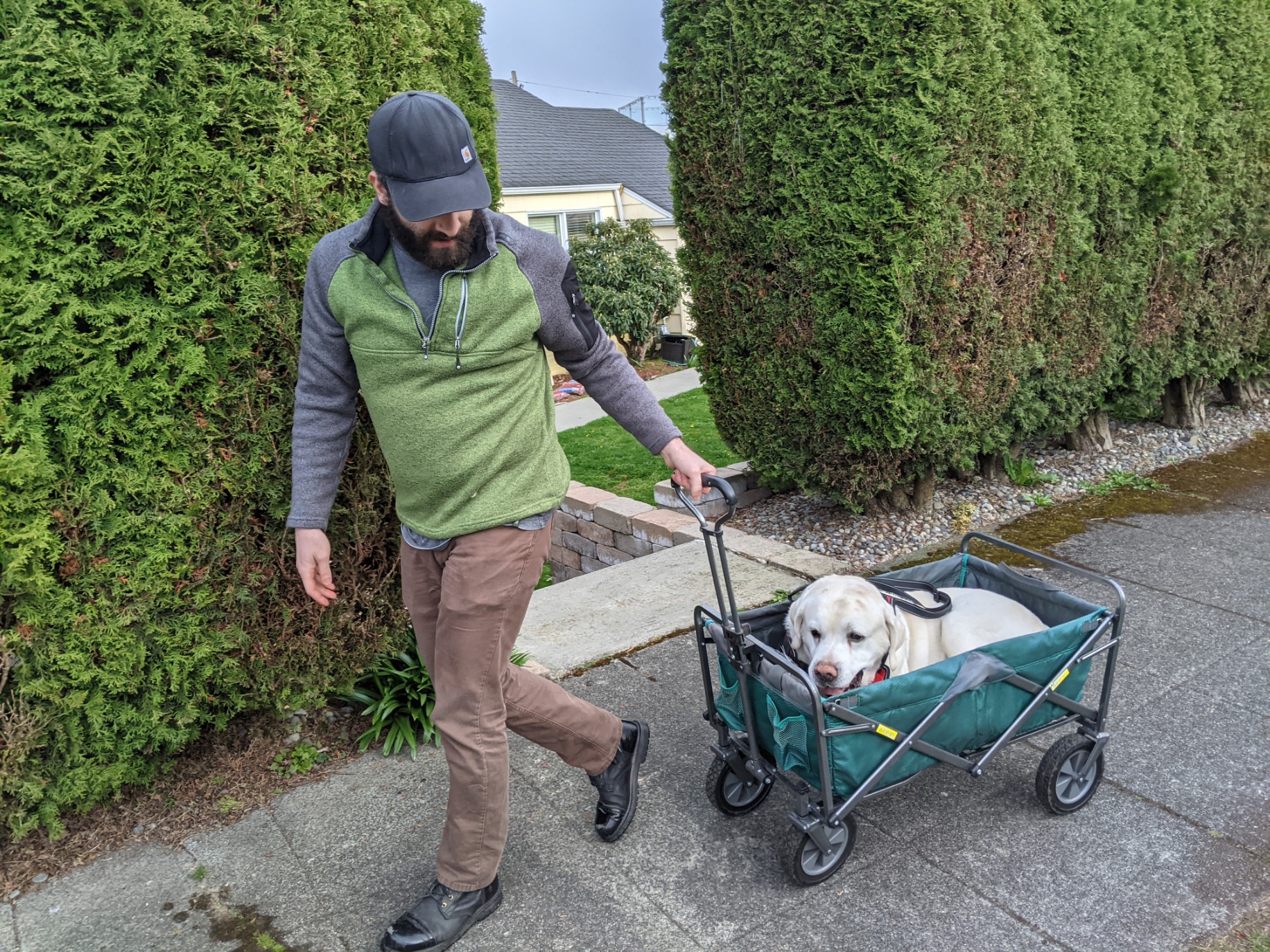 His mobility was so restricted, he could no longer go to his physical therapy. The family has to lift him onto his feet and then steady him into the backyard to do his business.